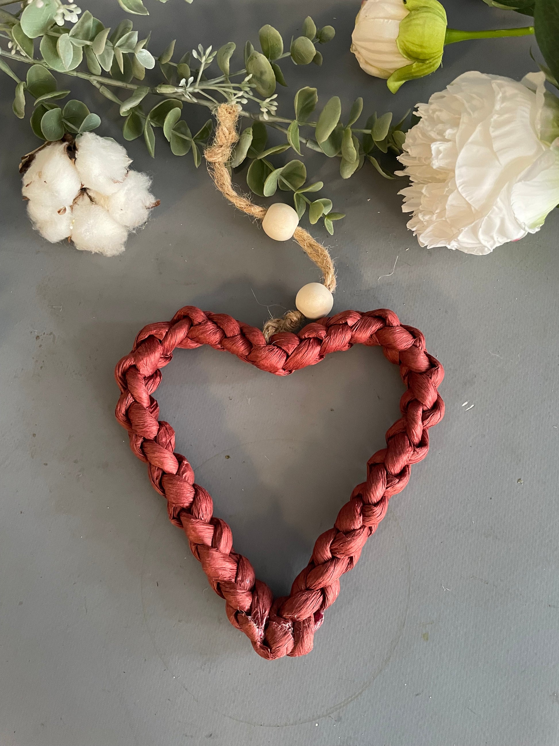 Ein Herz geht immer. Schöne klassische Herzform. Feste Herzform mit Papier umwickelt und Kordel zum Hängen in dreim Größen und den Farben Olive, Creme und Bordeaux. Ohne Dekoration