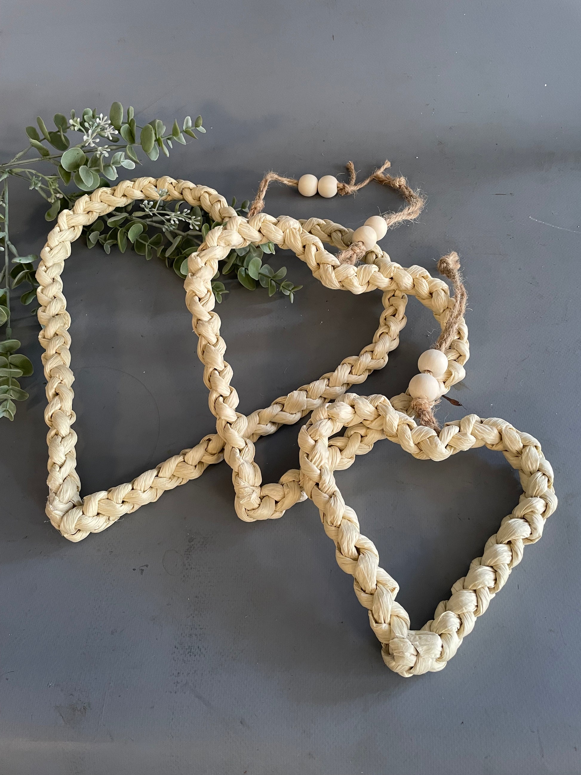 Ein Herz geht immer. Schöne klassische Herzform mit Kordel zum Hängen. Feste Herzform mit Papier umwickelt in drei Größen und den Farben Olive, Creme und Bordeaux. Ohne Dekoration