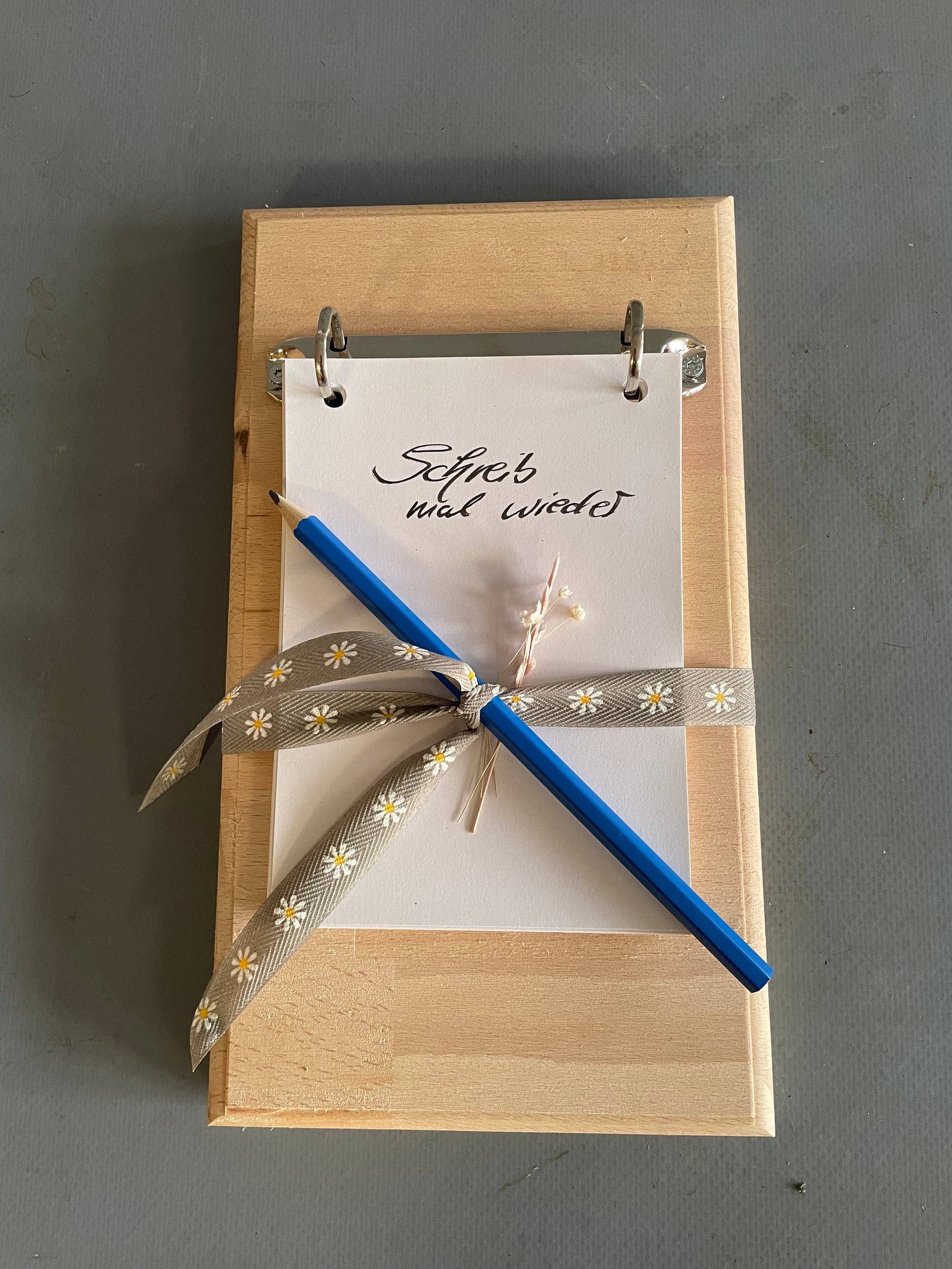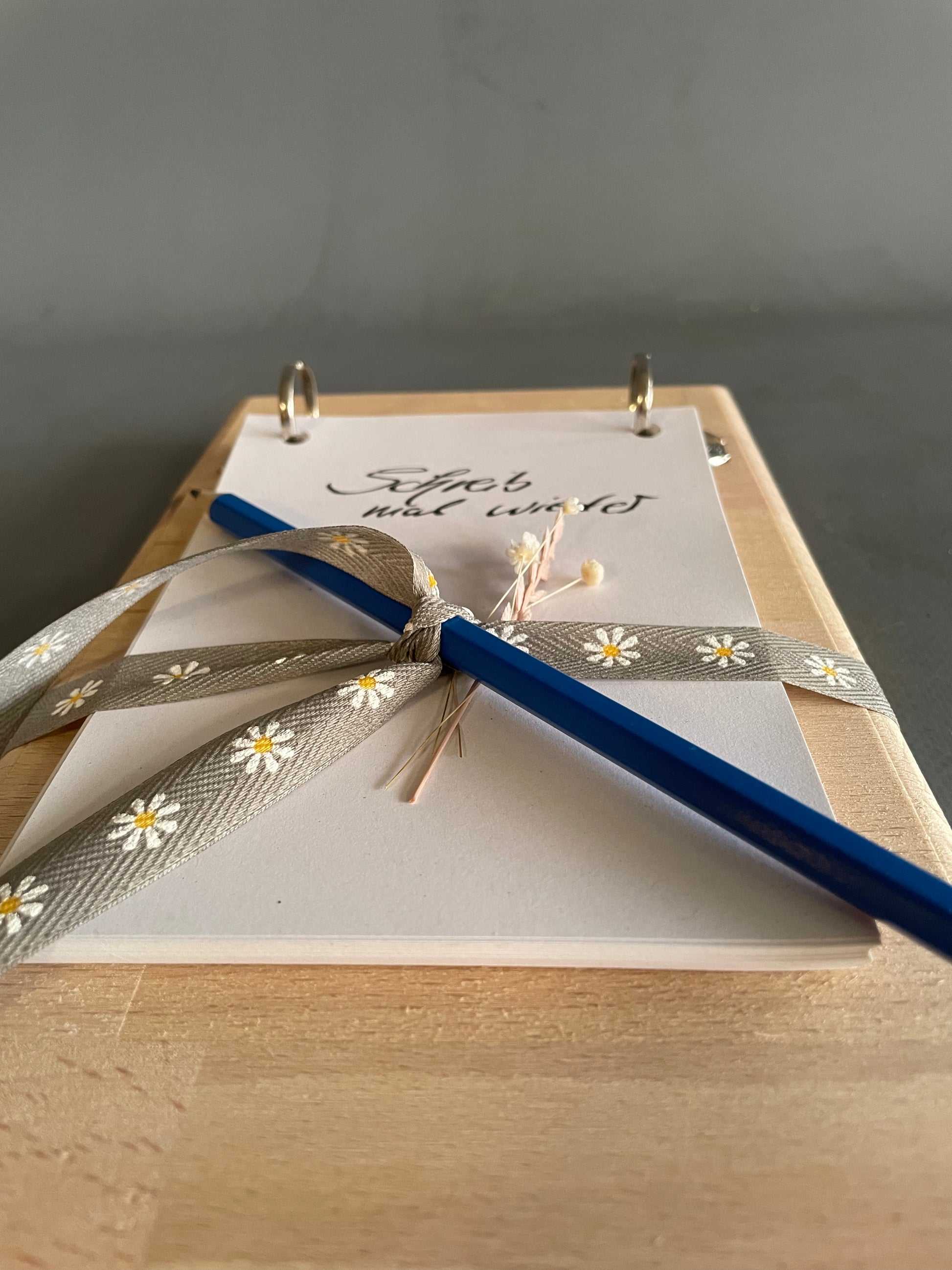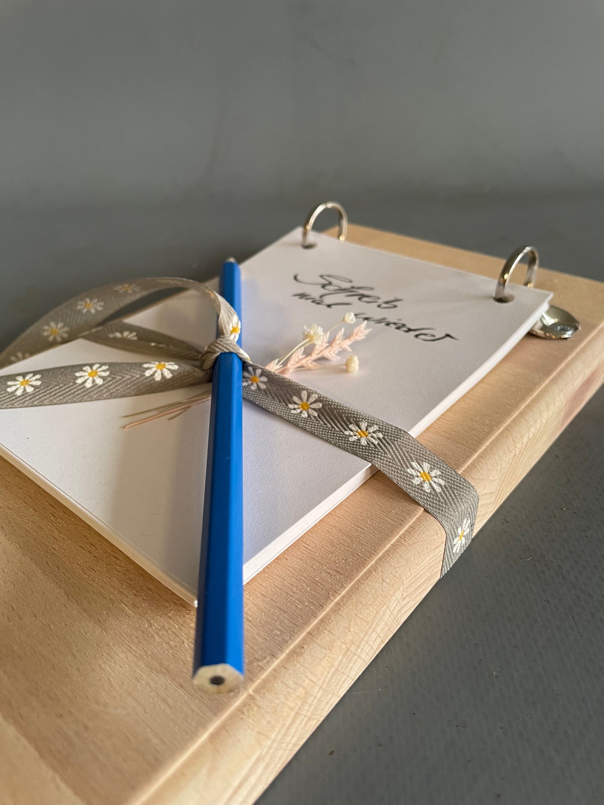 Aus Buchenholz 25x14,5 cm mit Ringbuchhalter, Notizblätter und Stift